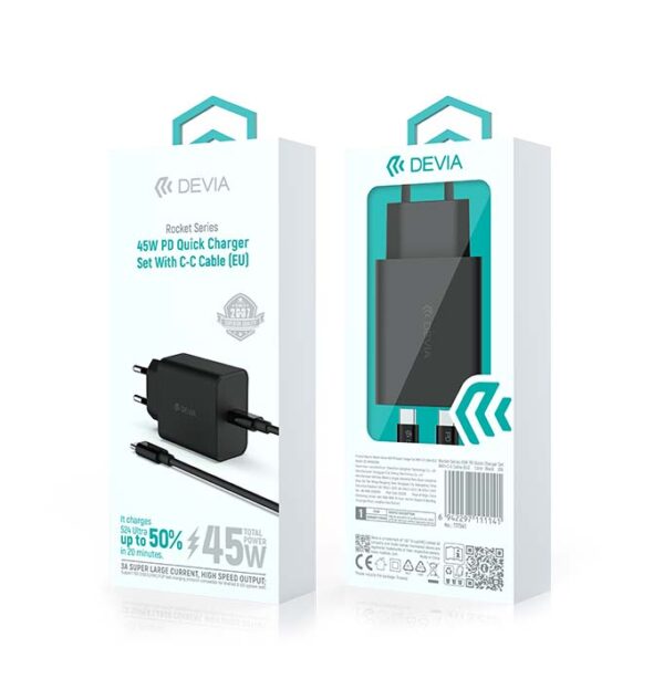 Devia Rocket Series PD 45W Φορτιστής με Καλώδιο USB-C – Υπερταχεία & Ασφαλής Φόρτιση