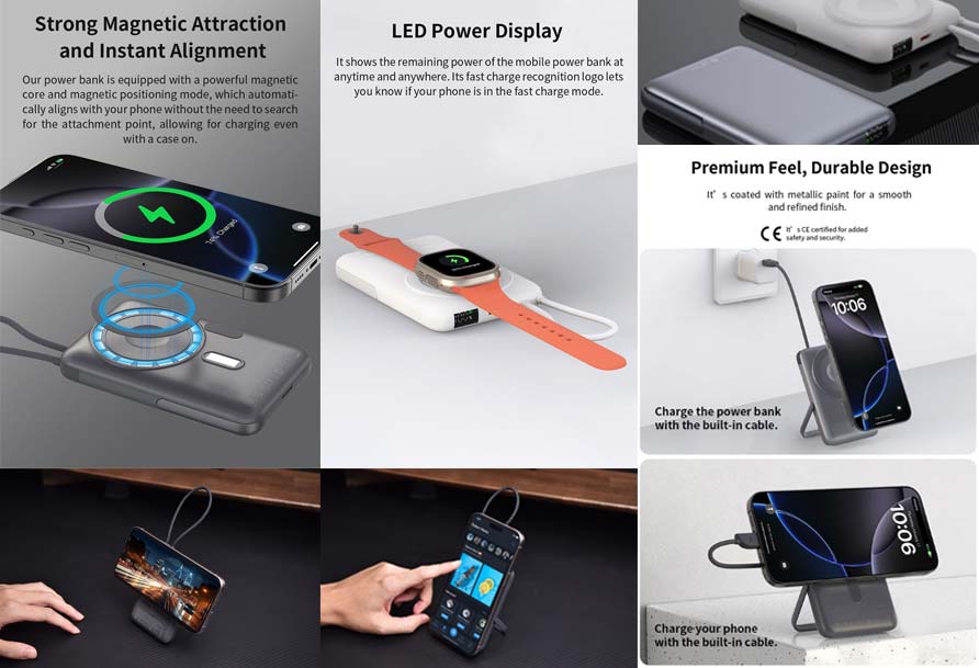 Η μπαταρία 10000mAh εξασφαλίζει μεγάλη αυτονομία για το smartphone και το smartwatch σου. Η οθόνη LED εμφανίζει πάντα το διαθέσιμο ποσοστό φόρτισης. Ο premium μεταλλικός σχεδιασμός προσφέρει ανθεκτικότητα και κομψή εμφάνιση, ιδανική για καθημερινή χρήση και ταξίδια.