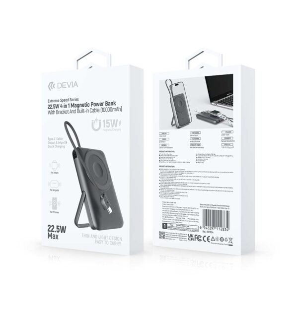 Power Bank Extreme Speed 22.5W 4σε1 Μαγνητικό με Στήριξη & Ενσωματομένο Καλώδιο (10000mAh) Devia
