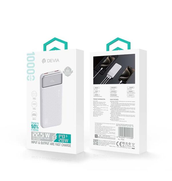 Φόρτισε τις συσκευές σου γρήγορα και αξιόπιστα με το DEVIA Smart Series Power Bank 10000mAh 22.5W. Η προηγμένη τεχνολογία fast charging υποστηρίζει Huawei Super Fast Charge και Apple PD 20W. Έτσι εξασφαλίζει ταχύτατη φόρτιση όπου κι αν βρίσκεσαι. Η μεγάλη χωρητικότητα καλύπτει τις καθημερινές ανάγκες ενέργειας και προσφέρει έως και πολλαπλές φορτίσεις μέσα στην ημέρα.