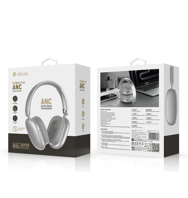 Devia EarBass Pro2 ANC Wireless Headphones Silver