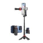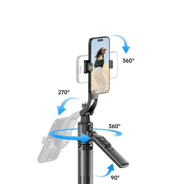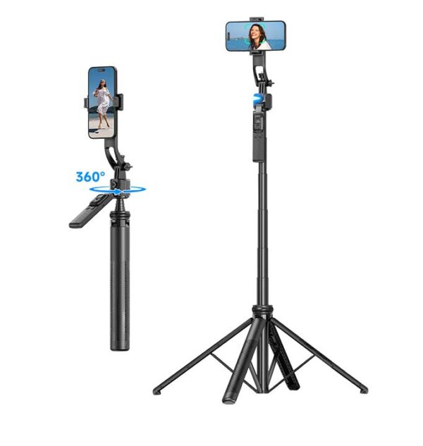 Επέκτεινε τη ράβδο έως 1.63 μέτρα για εντυπωσιακές ομαδικές λήψεις. Ρύθμισε τη γωνία με περιστροφή 360° και πολλαπλές θέσεις λήψης. Χρησιμοποίησε το αποσπώμενο τηλεχειριστήριο για απόλυτο έλεγχο. Δημιούργησε σταθερά πλάνα χάρη στη στιβαρή τετραποδική βάση. Απόλαυσε premium κατασκευή με αλουμινένιο κράμα για ανθεκτικότητα και φορητότητα.