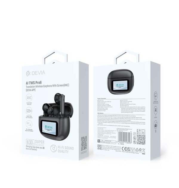 Ασύρματα ακουστικά Devia AI TWS Pro6 Live μετάφραση και Οθόνη (ANC)